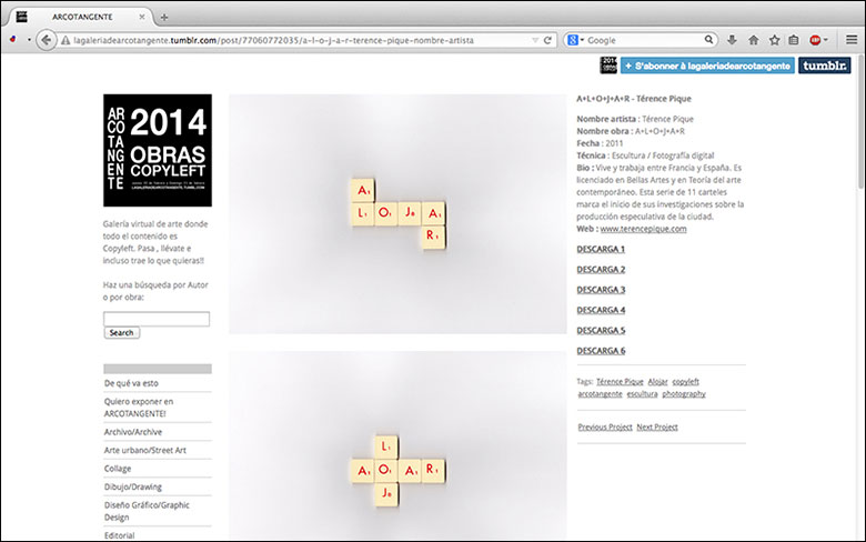 Exposition en ligne à Arcotangente : http://lagaleriadearcotangente.tumblr.com